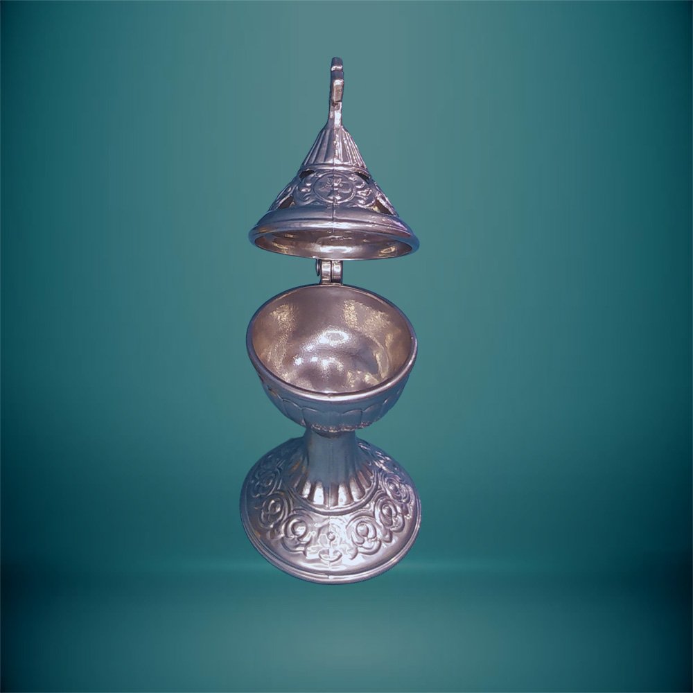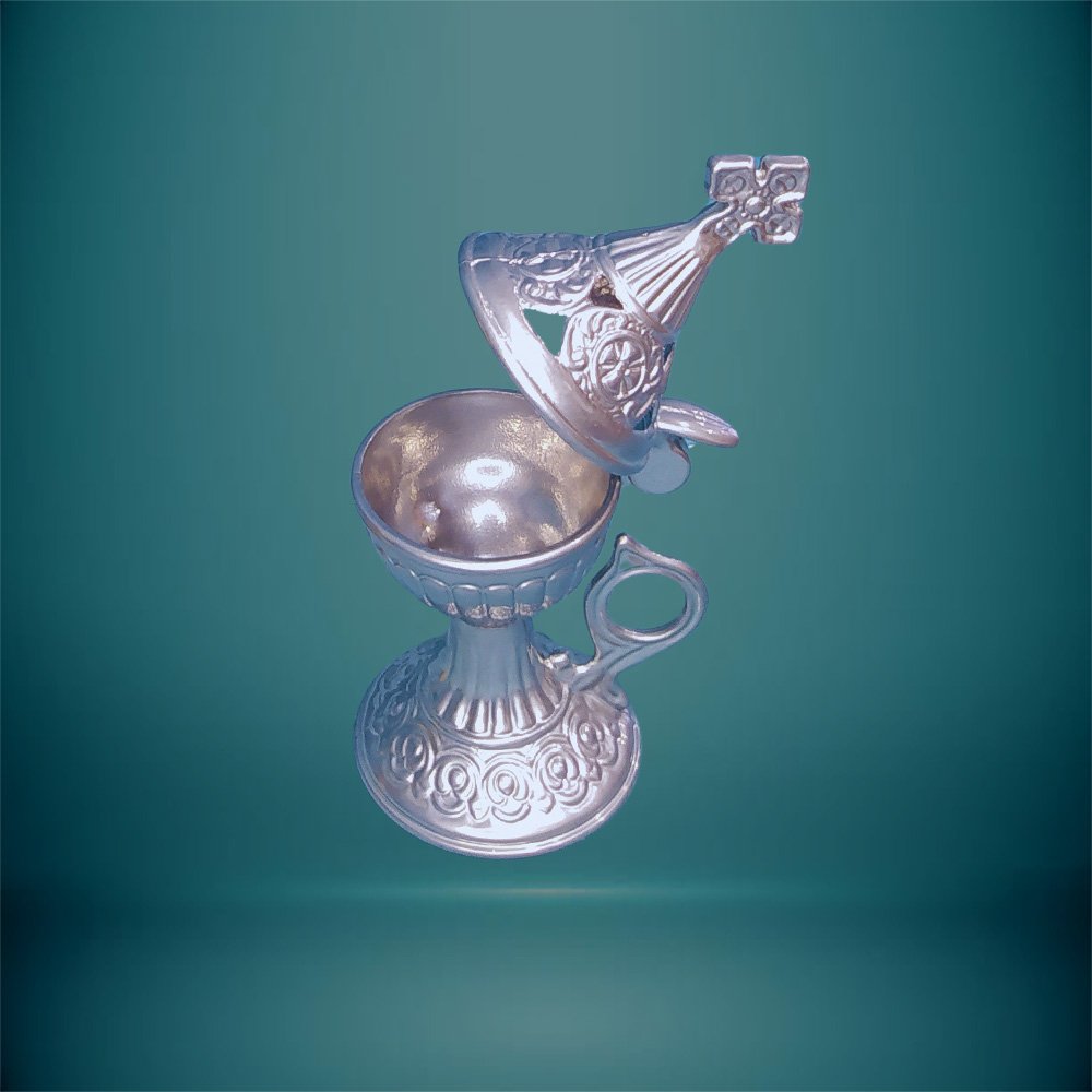Το Ασημένιο Θυμιατήρι συνδυάζει την παραδοσιακή τέχνη με την κομψότητα του ασημιού, δημιουργώντας ένα διαχρονικό αντικείμενο λατρείας και διακόσμησης. Με λεπτομερή σχεδιασμό και γυαλιστερό φινίρισμα, προσφέρει μια ατμόσφαιρα γαλήνης και σεβασμού σε κάθε χώρο. Ιδανικό για προσωπική χρήση ή ως ξεχωριστό δώρο με πνευματικό νόημα.