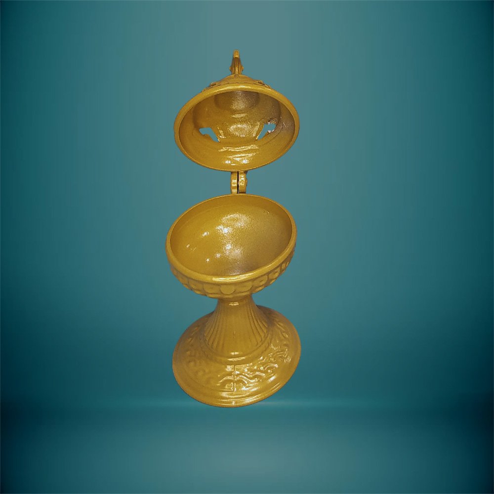 Το Χρυσαφένιο Θυμιατήρι εντυπωσιάζει με τη λαμπερή του χρυσή απόχρωση και τον κομψό, διαχρονικό σχεδιασμό. Ιδανικό για να δημιουργήσει μια ζεστή και ιερή ατμόσφαιρα, προσφέρει κομψότητα και φινέτσα σε κάθε χώρο λατρείας ή προσωπικής στιγμής ηρεμίας.